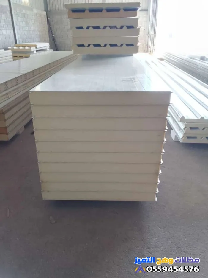 الساندوتش بنل عبارة عن ألواح مكوّنة من طبقتين معدنيتين بينهما مادة عازلة (مثل البولي يوريثان أو الصوف الصخري)، مما يمنحه قدرة ممتازة على العزل الحراري والصوتي، مع وزن خفيف وسهولة في التركيب.